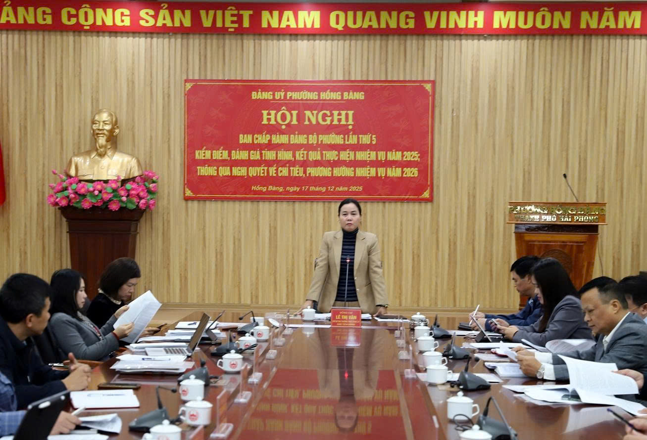 Thực hiện chương trình công tác năm 2025, sáng ngày 17/12/2025, Đảng ủy phường Hồng Bàng tổ chức Hội nghị Ban Chấp hành Đảng bộ phường lần thứ 5 nhằm kiểm điểm, đánh giá kết quả thực hiện nhiệm vụ năm 2025; đồng thời thảo luận, thông qua nghị quyết về chỉ tiêu, nhiệm vụ và giải pháp trọng tâm năm 2026.