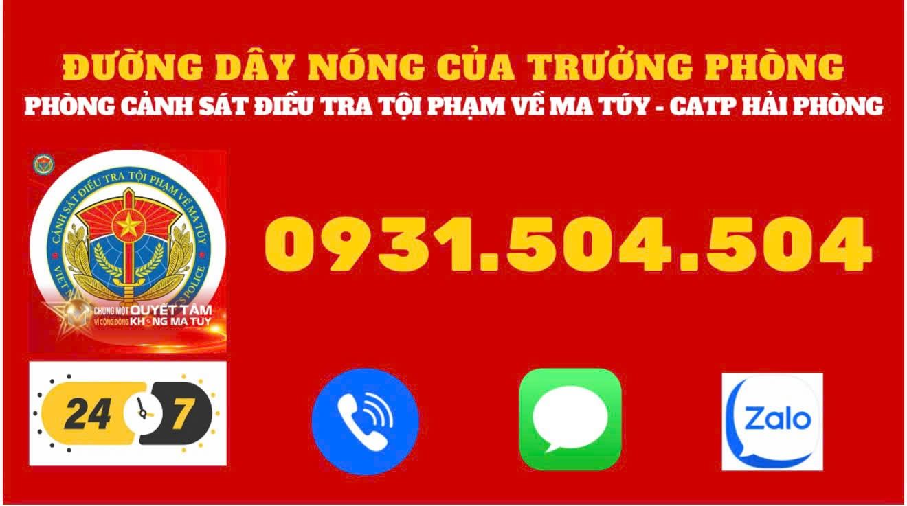 Số hotline của đồng chí Thượng tá Phạm Hữu Đoàn - Trưởng phòng Cảnh sát điều tra tội phạm về ma túy (PC04), Công an thành phố Hải Phòng 0931504504.