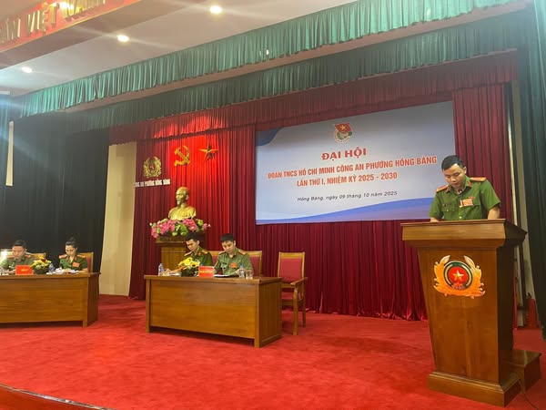Sáng ngày 09/10/2025, Đoàn TNCS Hồ Chí Minh Công an phường Hồng Bàng long trọng tổ chức Đại hội lần thứ I, nhiệm kỳ 2025 - 2030. Đại hội là dấu mốc quan trọng, khẳng định tinh thần đoàn kết, xung kích, sáng tạo của tuổi trẻ Công an phường; tiên phong trong thực hiện nhiệm vụ bảo đảm an ninh trật tự, góp phần xây dựng phường Hồng Bàng ngày càng phát triển.