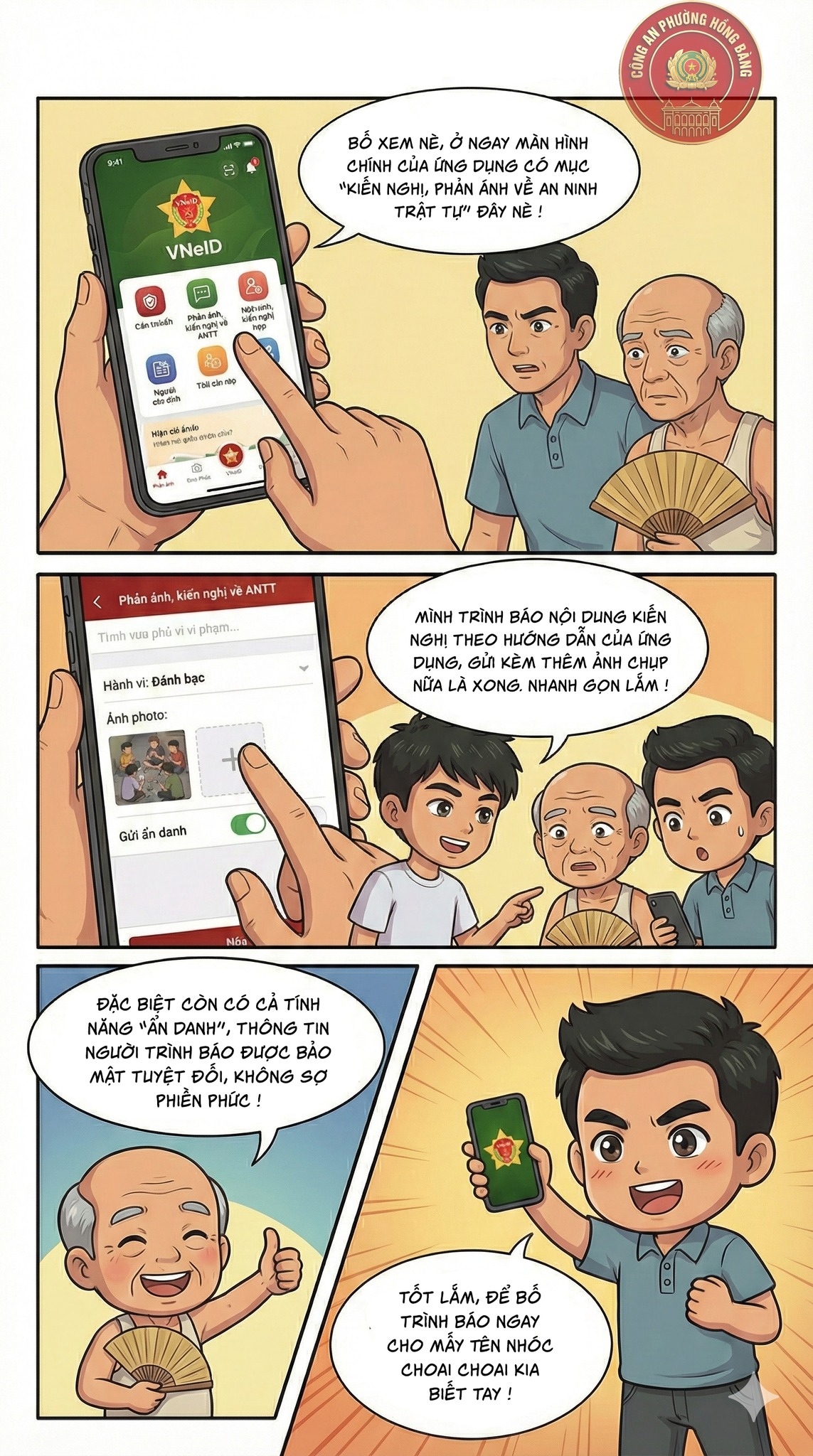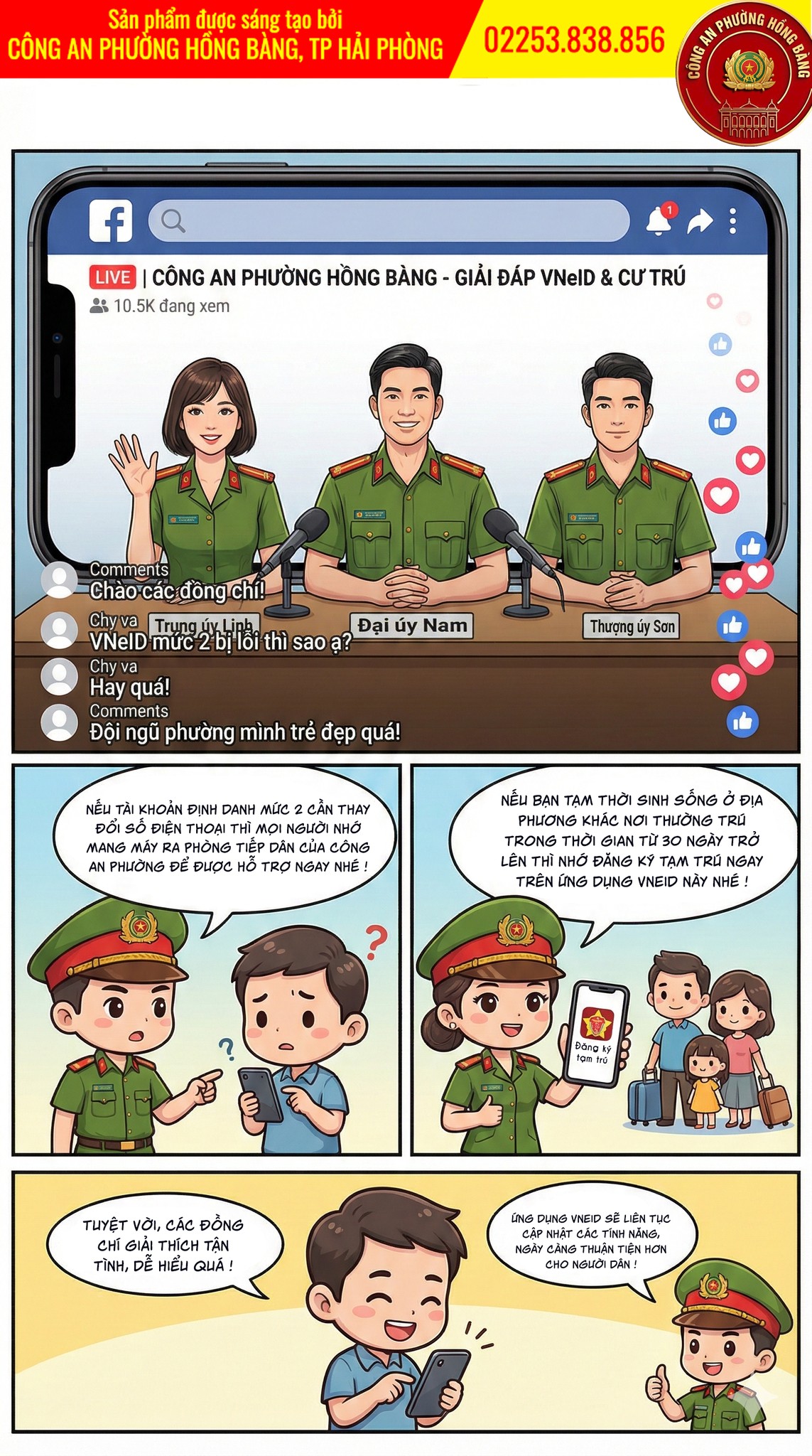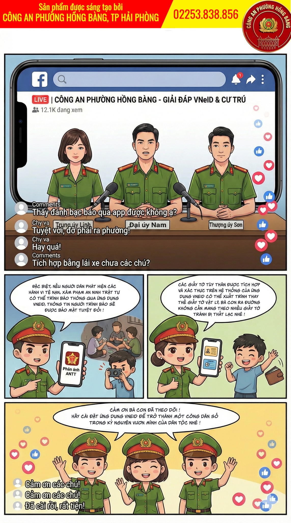 Mọi ý kiến đóng góp về hình ảnh, nhân vật, nội dung vui lòng gửi qua fanpage của Công an phường