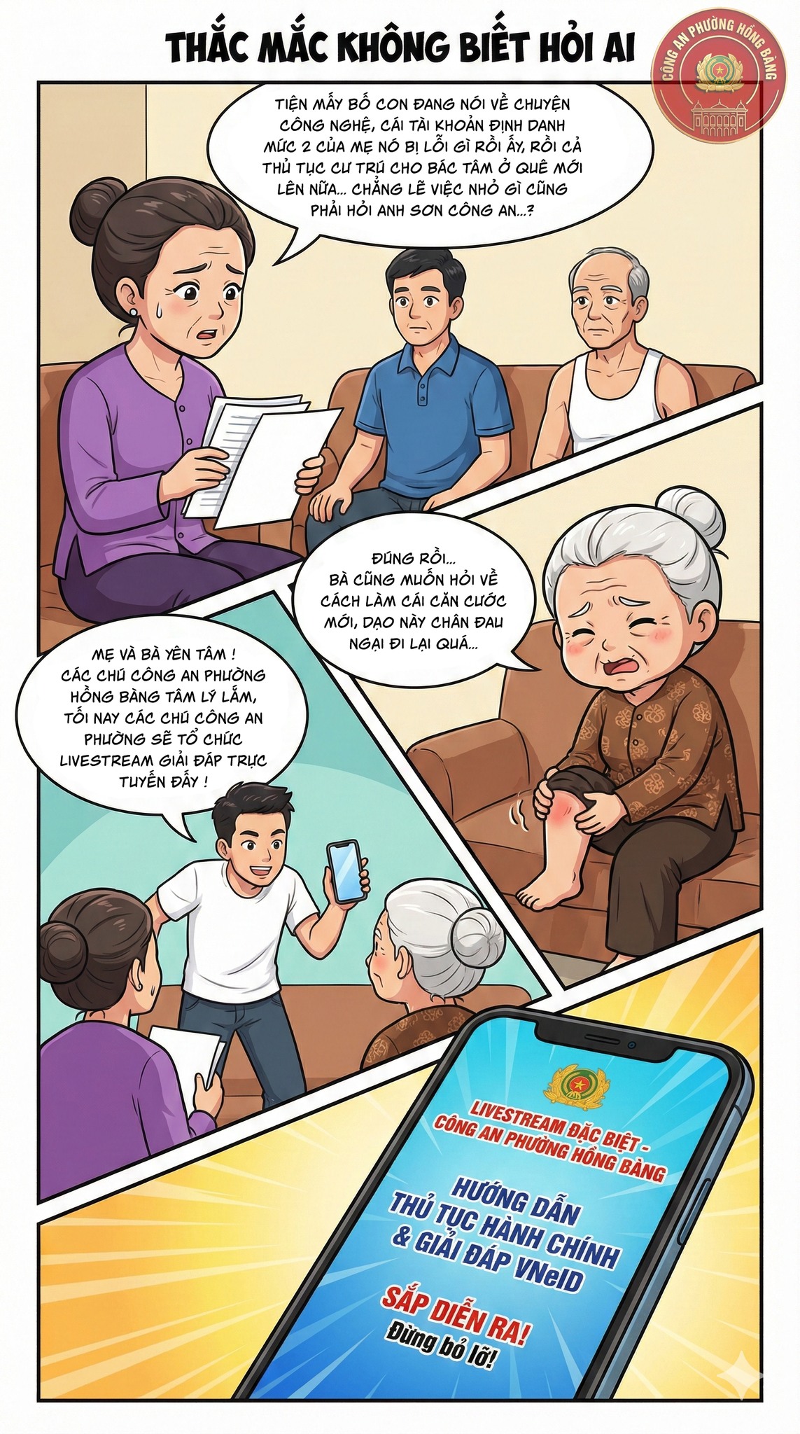 Ấn phẩm gồm những mẩu chuyện ngắn do nhóm Chuyển đổi số của Công an phường Hồng Bàng xây dựng nhằm mục đích truyền tải nội dung tuyên truyền đến người dân một cách gần gũi, dễ hiểu hơn.