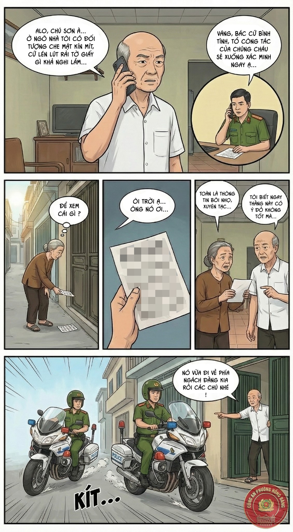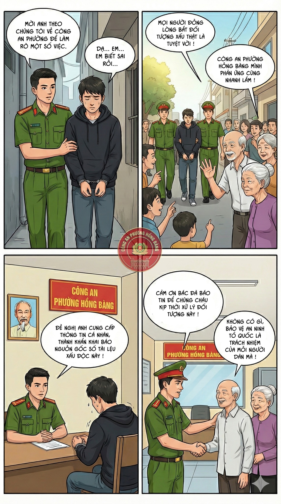 Mọi ý kiến đóng góp về hình ảnh, nhân vật, nội dung vui lòng gửi qua fanpage của Công an phường