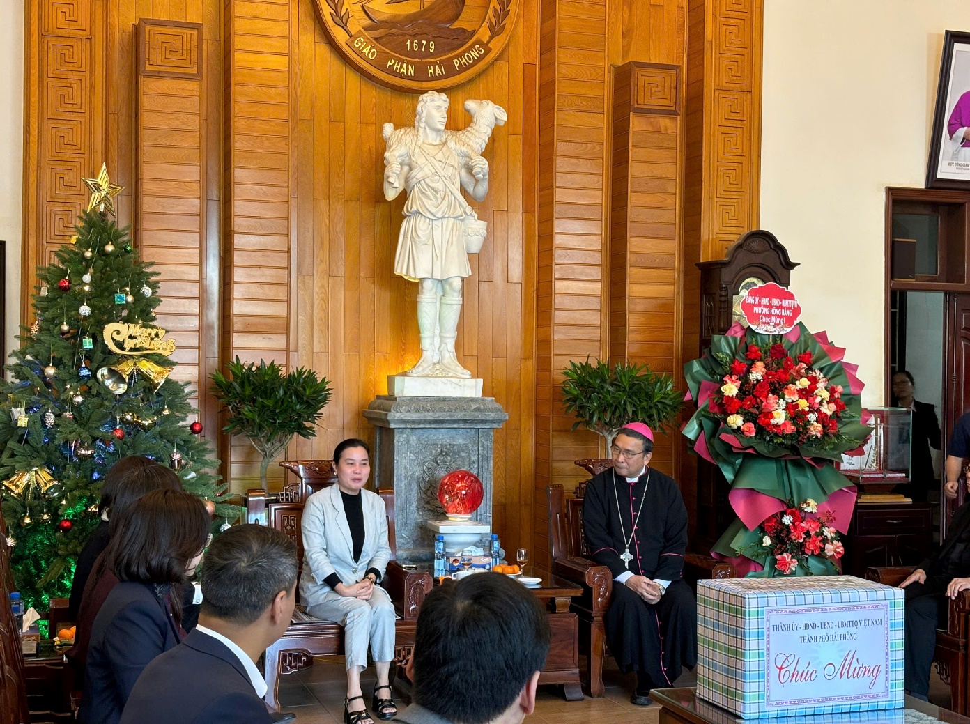 Lãnh đạo phường Hồng Bàng thăm, chúc mừng tổ chức công giáo nhân dịp Lễ Giáng sinh năm 2025