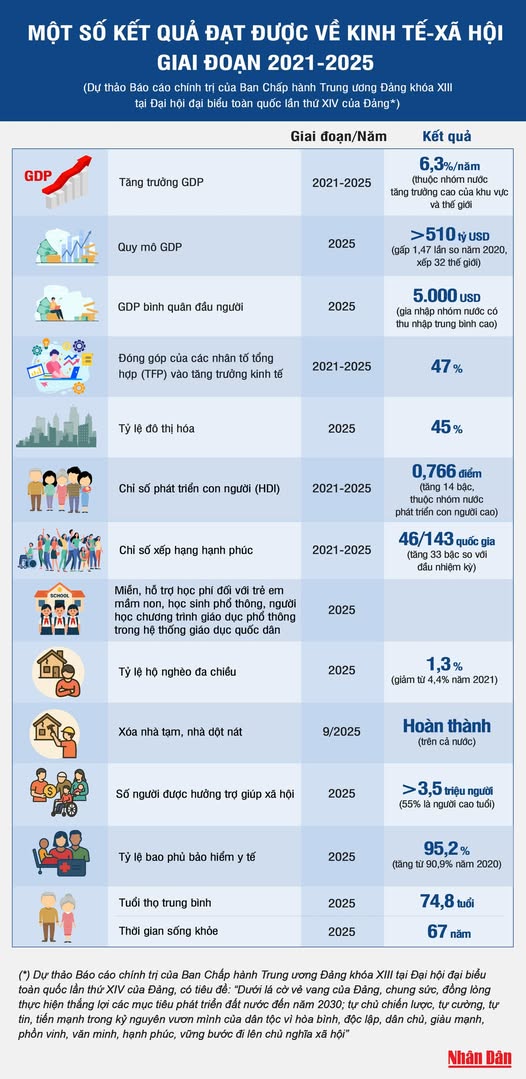 MỘT SỐ KẾT QUẢ ĐẠT ĐƯỢC VỀ KINH TẾ - XÃ HỘI GIAI ĐOẠN 2021 - 2025