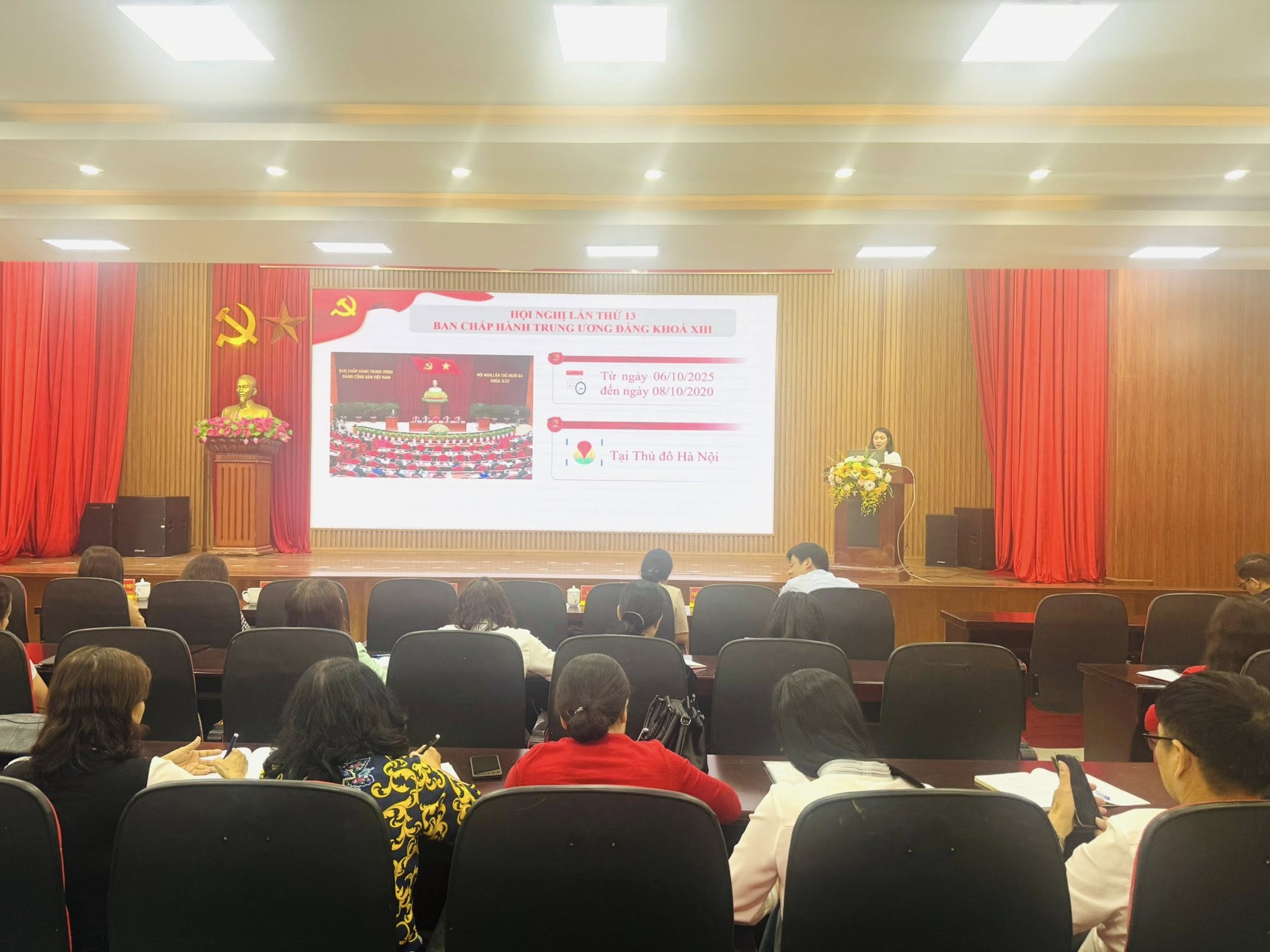 Đồng chí Trần Thị Thu Hồng, Uỷ viên Ban Thường vụ Đảng uỷ, Trưởng ban Ban Xây dựng Đảng thông báo kết quả Hội nghị lần thứ 13 Ban Chấp hành Trung ương Đảng khóa XIII được diễn ra từ ngày 6/10/2025 đến ngày 8/10/2025 tại Thủ đô Hà Nội và các nội dung Hội nghị đã thảo luận, cho ý kiến.
