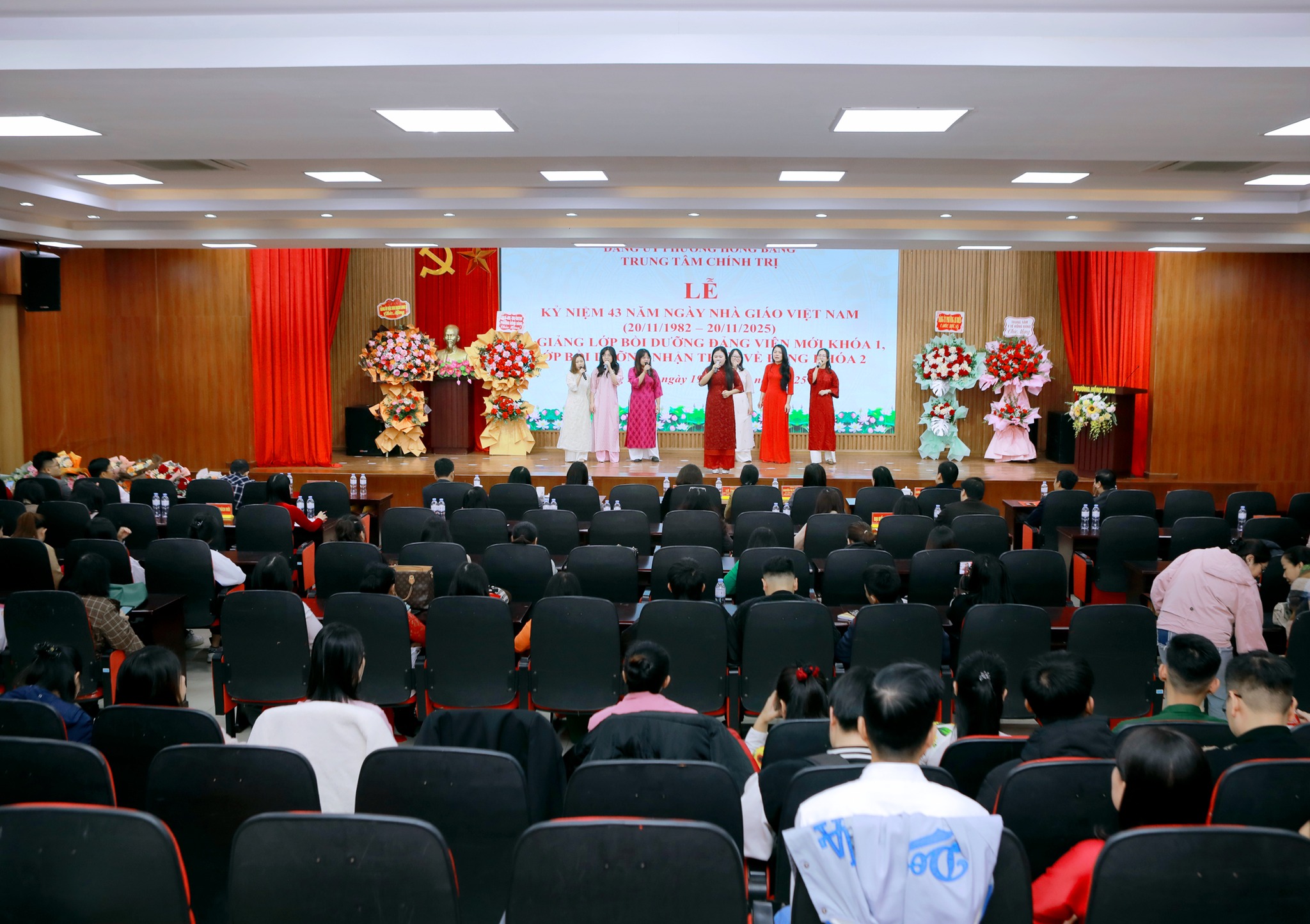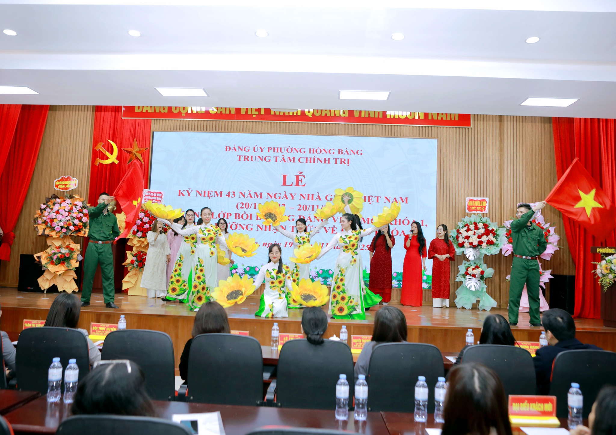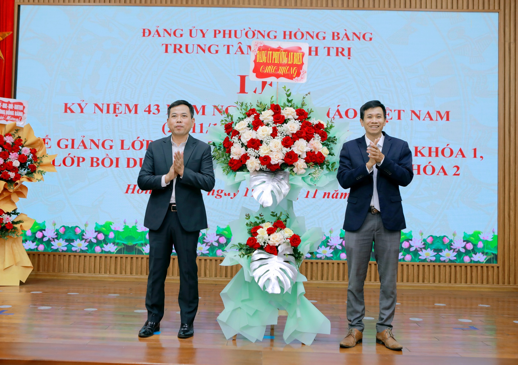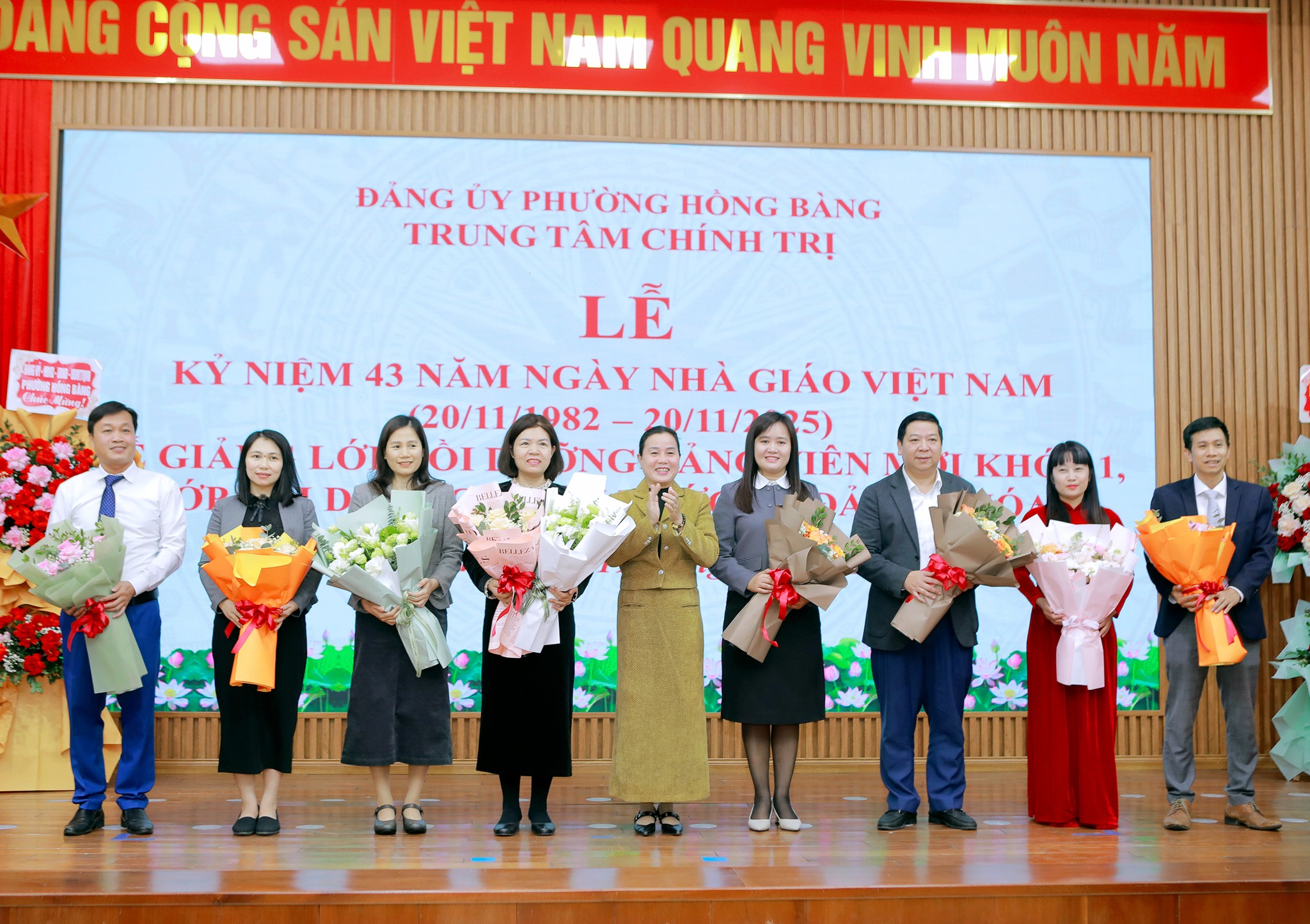 Trong không khí sôi nổi cùng cả nước hướng về kỷ niệm 43 năm ngày Nhà giáo Việt Nam (20/11/1982 - 20/11/2025), nhằm tri ân sự đóng góp các giảng viên trong công tác giảng dạy của Trung tâm chính trị phường và đánh giá kết quả học tập của khóa học Bồi dưỡng đảng viên mới K1 và lớp nhận thức về Đảng khóa 2. Sáng ngày 19/11/2025, Đảng ủy phường Hồng Bàng đã chỉ đạo Trung tâm Bồi dưỡng chính trị phường tổ chức Lễ kỷ niệm 43 năm ngày Nhà giáo Việt Nam và bế giảng lớp Bồi dưỡng đảng viên mới khóa 1 và nhận thức về Đảng khóa 2.