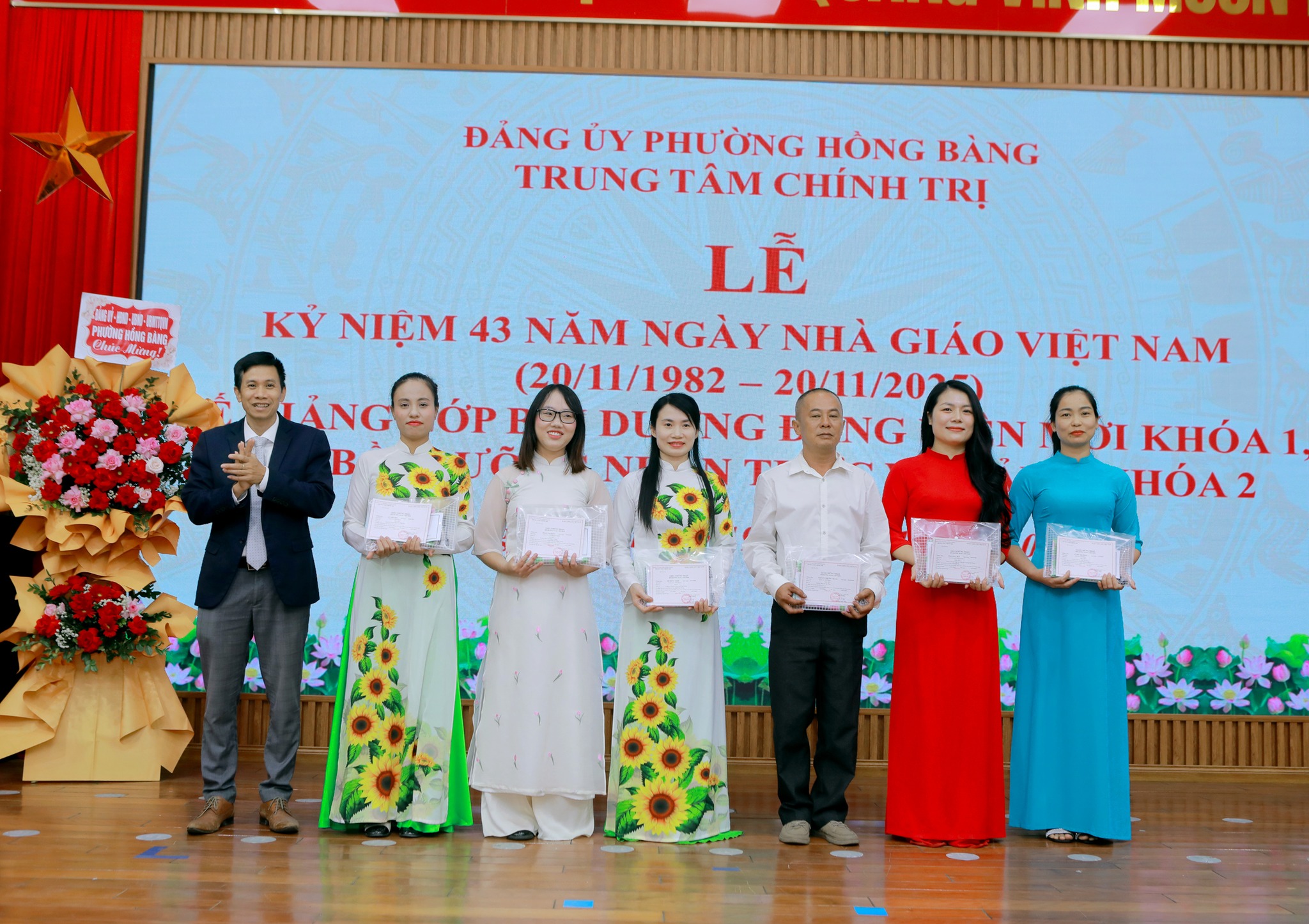 PHƯỜNG HỒNG BÀNG TỔ CHỨC LỄ KỶ NIỆM 43 NĂM NGÀY NHÀ GIÁO VIỆT NAM VÀ BẾ GIẢNG LỚP BỒI DƯỠNG ĐẢNG VIÊN MỚI KHÓA 1, LỚP BỒI DƯỠNG NHẬN THỨC VỀ ĐẢNG KHÓA 2