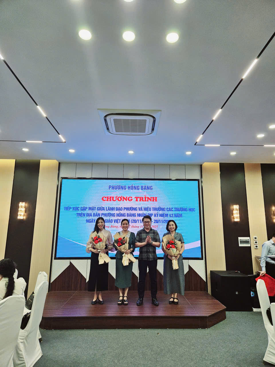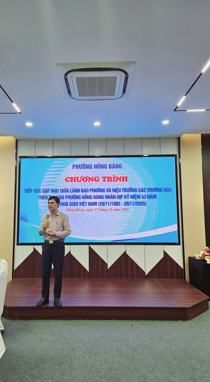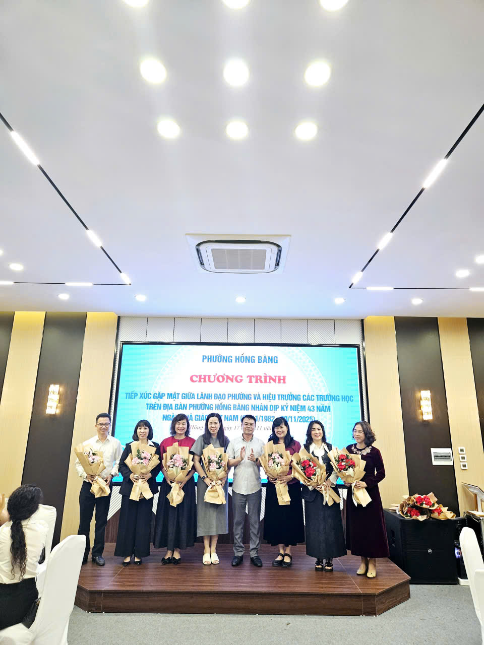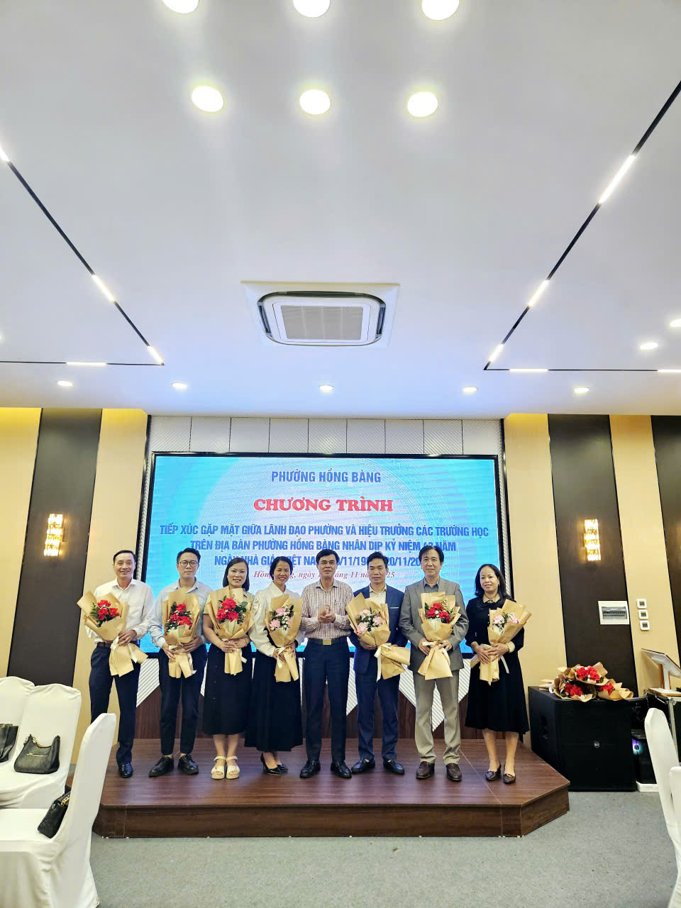 Nhân dịp kỷ niệm 43 năm Ngày Nhà giáo Việt Nam (20/11/1982 - 20/11/2025), Đảng ủy - HĐND - UBND - Uỷ ban MTTQ Việt Nam phường Hồng Bàng đã tổ chức Buổi tiếp xúc gặp mặt giữa lãnh đạo phường và hiệu trưởng các trường học trên địa bàn phường Hồng Bàng