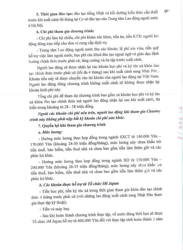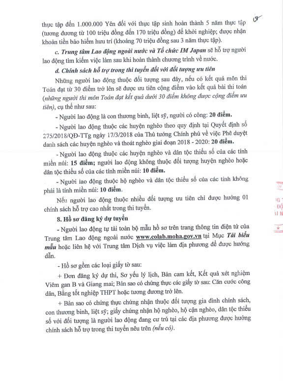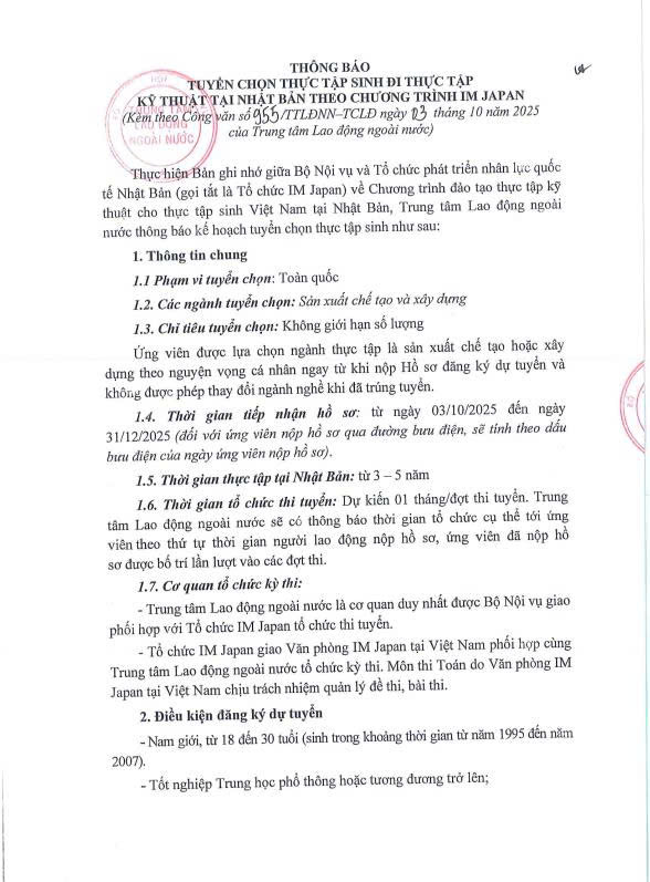 Thông báo tuyển chọn thực tập sinh đi thực thập kỹ thuật tại Nhật Bản theo chương trình IM JAPAN