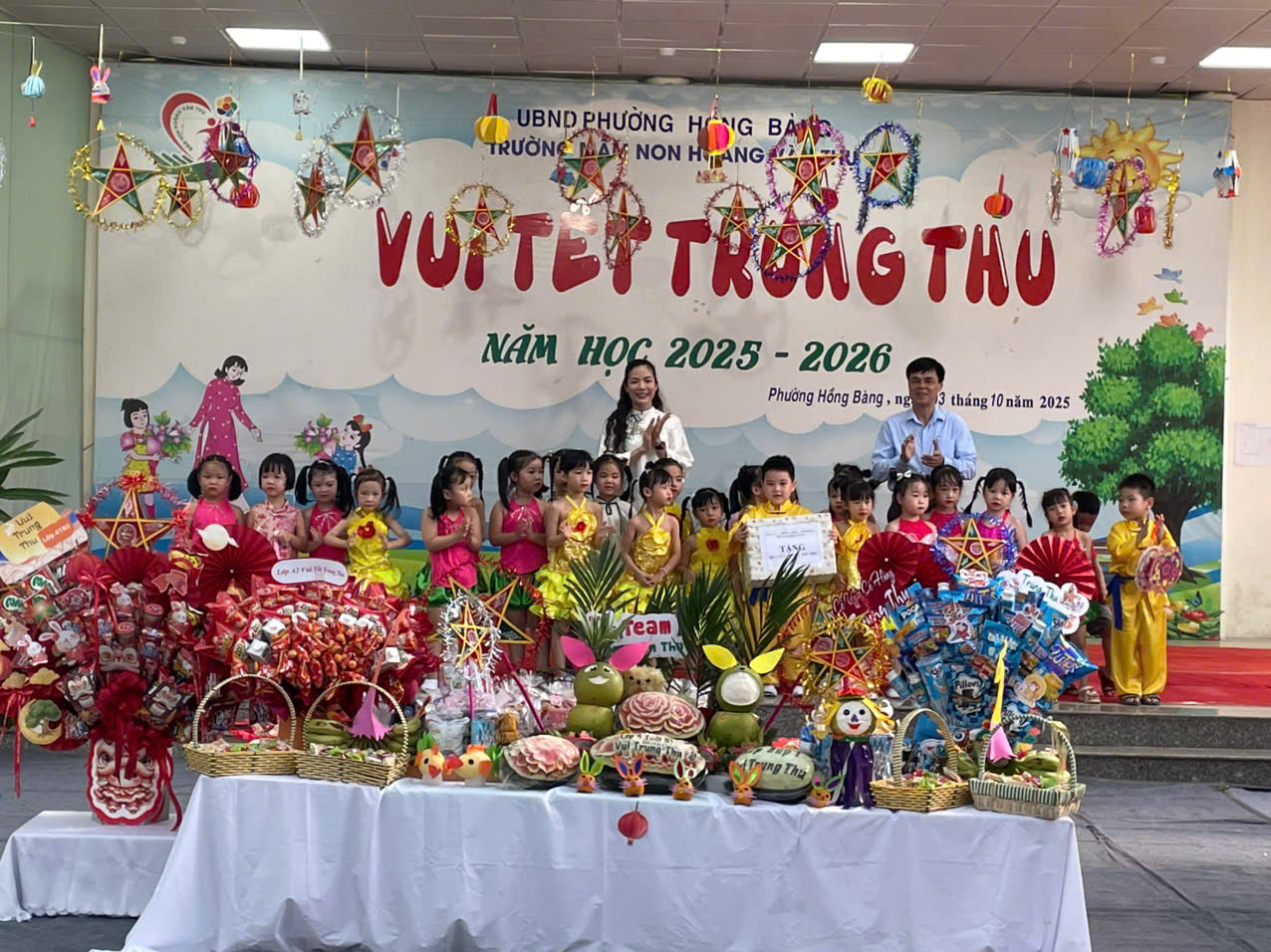 Dự Lễ Trung thu tại các trường học trên địa bàn phường Hồng Bàng có đồng chí Nguyễn Thành Hưng - Ủy viên Thành ủy, Bí thư Đảng ủy phường, đồng chí Phạm Văn Đoan - Phó Bí thư Đảng ủy, Chủ tịch UBND phường; đồng chí Trần Thị Lan - Ủy viên Ban Thường vụ Đảng ủy, Chủ tịch UBMTTQ Việt Nam phường; các đồng chí Ủy viên Ban Thường vụ Đảng ủy, Phó Chủ tịch HĐND, UBND phường và các đồng chí lãnh đạo các phòng, ban, ngành, đoàn thể thuộc phường.