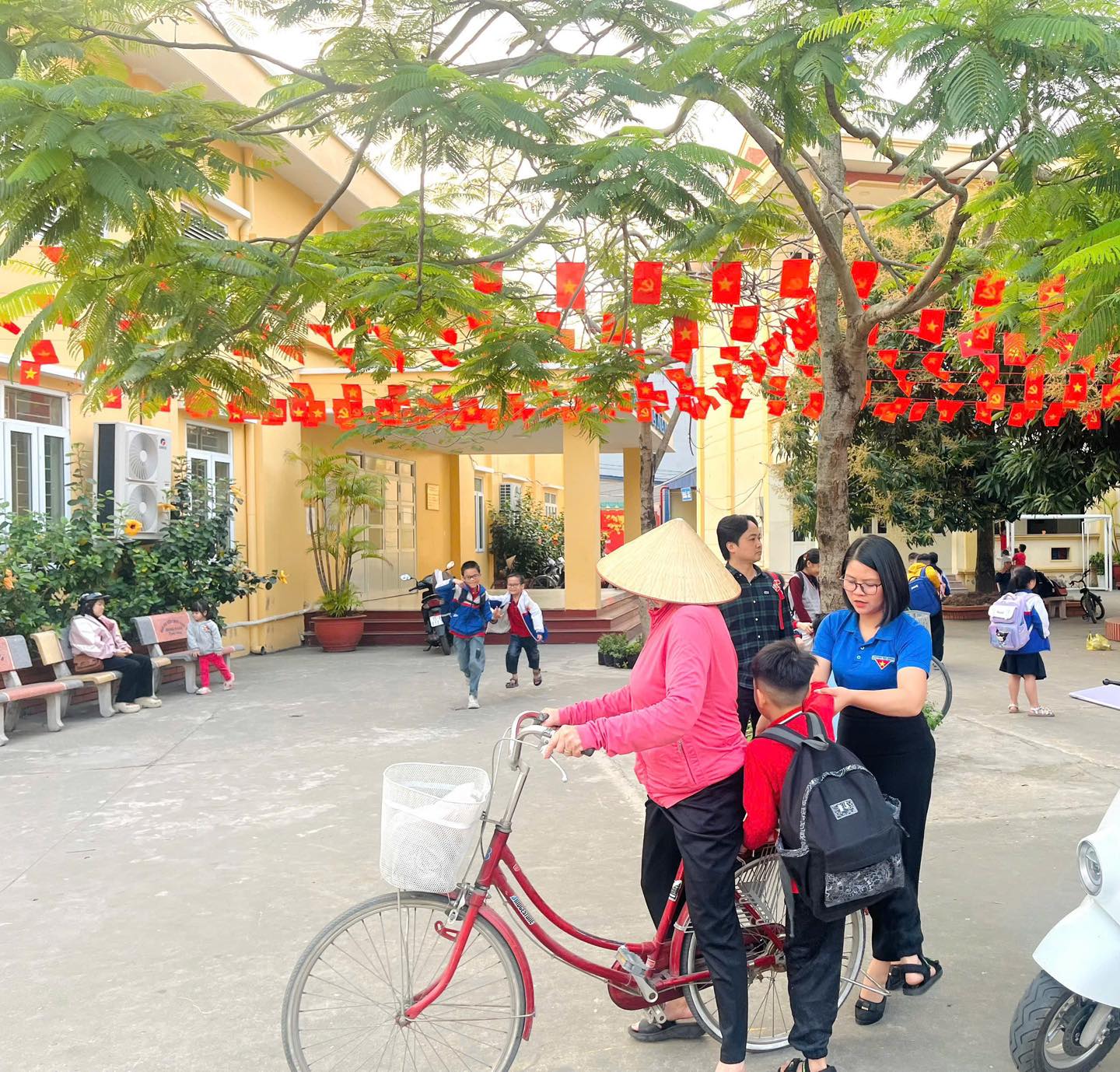 Phân luồng giao thông, hướng dẫn phụ huynh đưa đón học sinh đúng nơi quy định