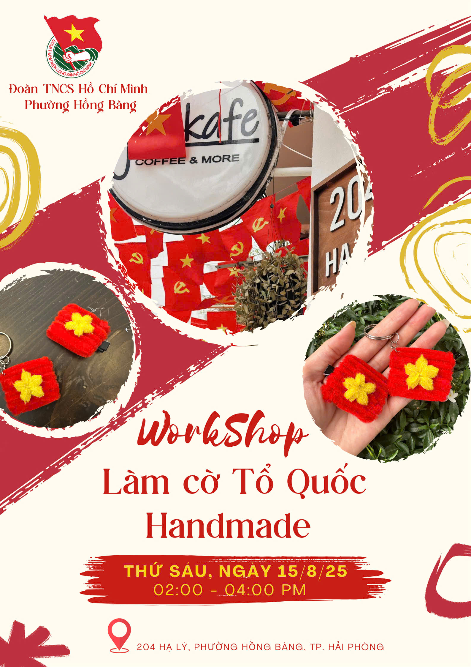 Đoàn Thanh niên phường Hồng Bàng hân hạnh tổ chức Workshop làm cờ Tổ Quốc handmade nhằm khơi dậy tình yêu quê hương, đất nước trong lòng đoàn viên, thanh niên cũng như khuyến khích sự sáng tạo, khéo léo của các bạn trẻ.