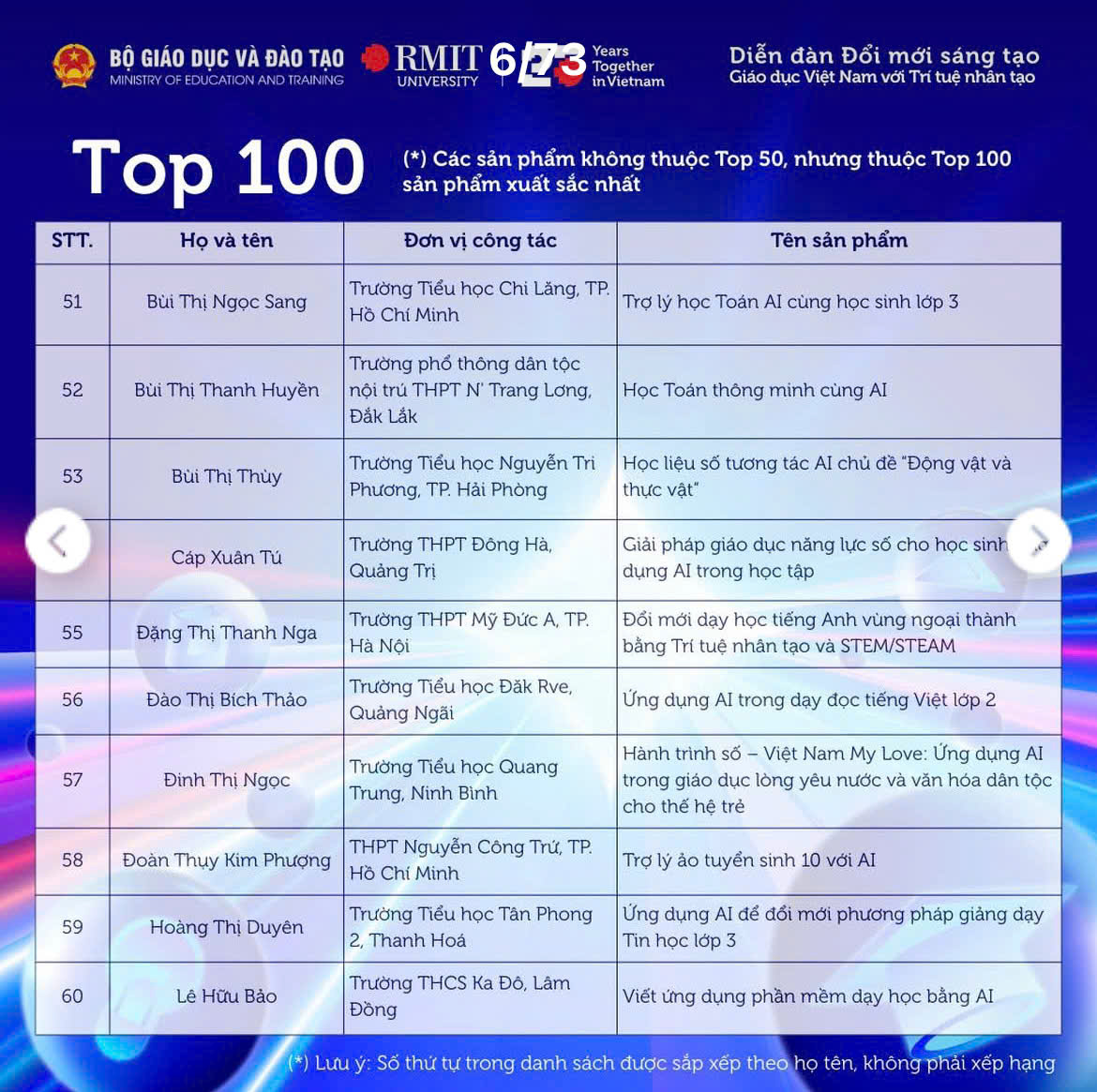 💥Giải thưởng “Tiên phong ứng dụng AI trong Giáo dục Việt Nam 2025” có đối tượng tham gia là giáo viên và cán bộ quản lý giáo dục từ các cơ sở giáo dục mầm non, phổ thông, giáo dục thường xuyên, trường chuyên biệt trên toàn quốc do Bộ GD&ĐT phối hợp cùng Đại học RMIT Việt Nam phát động.